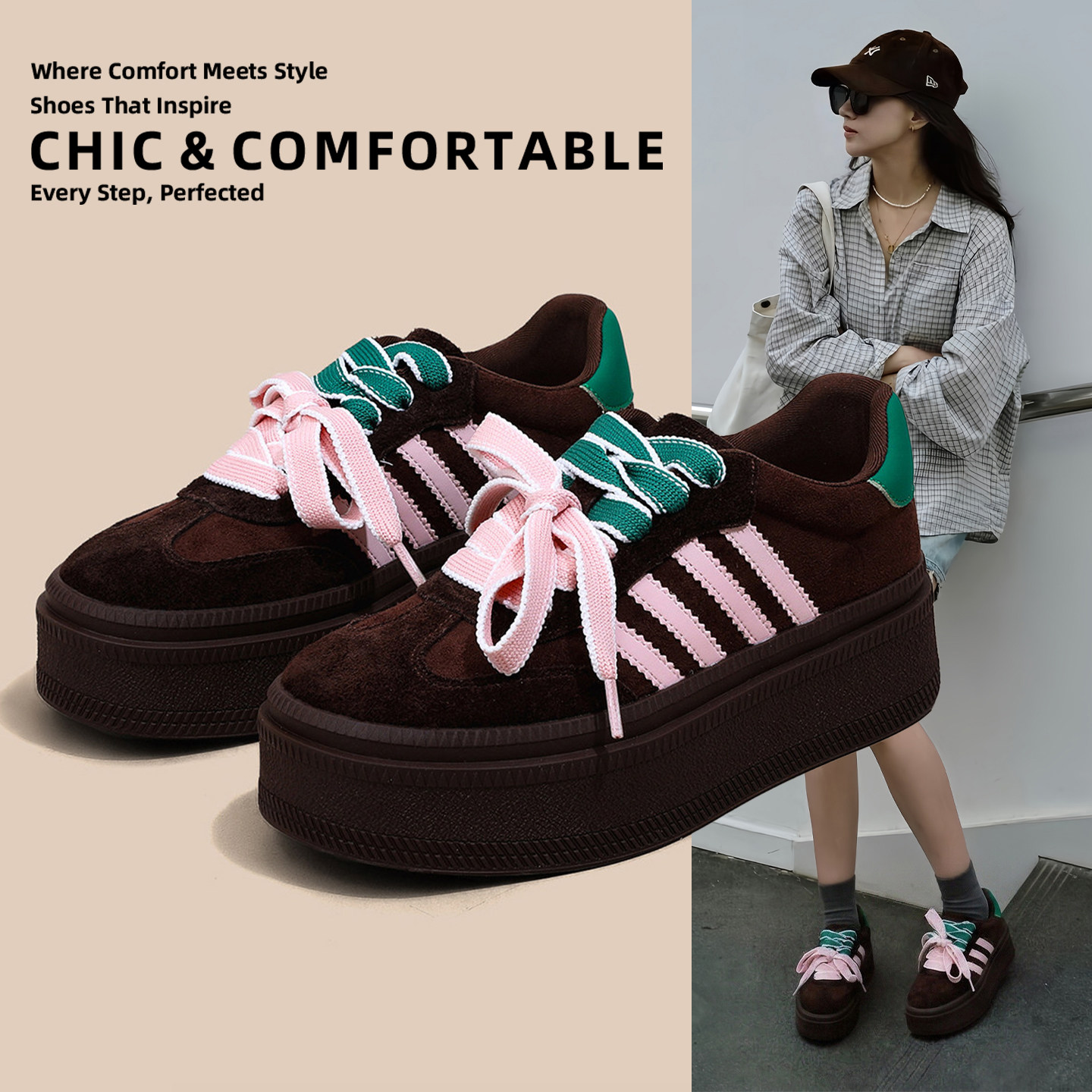 Hong Kong leather retro German training shoes women's spring and autumn thick soles increase height sports and leisure board shoes are versatile and popular muffin shoes