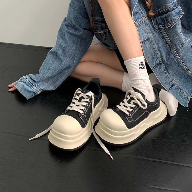 Italy SANLI ~ ugly cute heightened black and white big toe shoes women's new leather versatile casual sneakers bread shoes