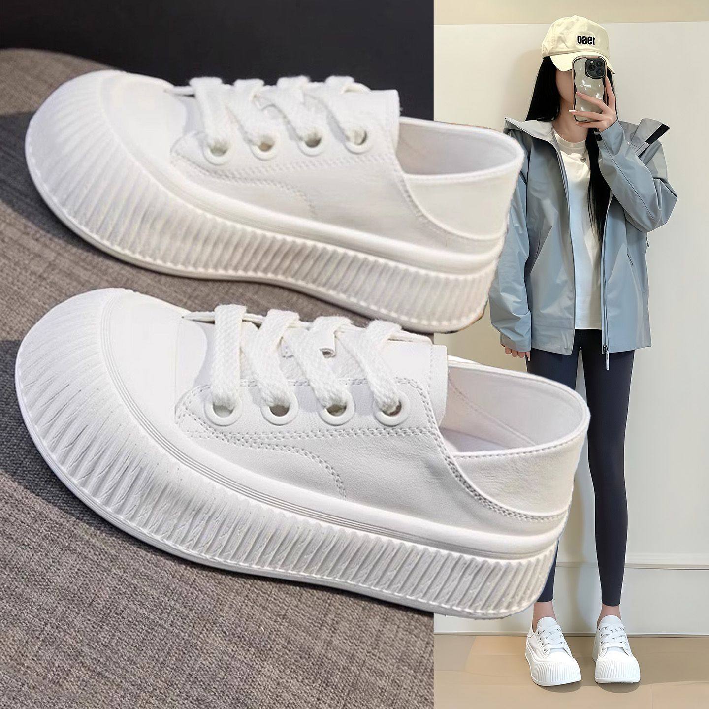 Hong Kong leather two-piece thick-soled heightened white shoes women's 2026 spring and autumn new muffin casual sports shoes Korean version