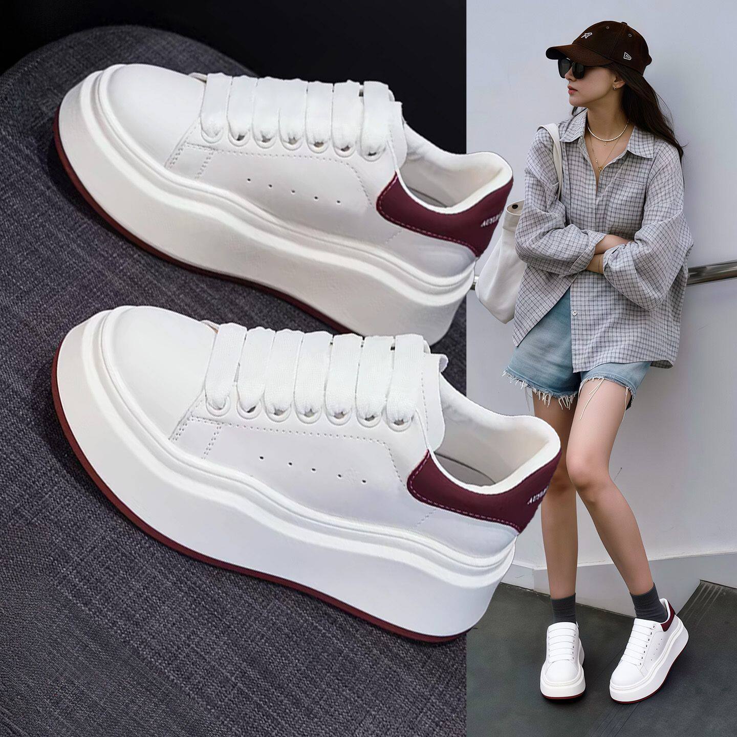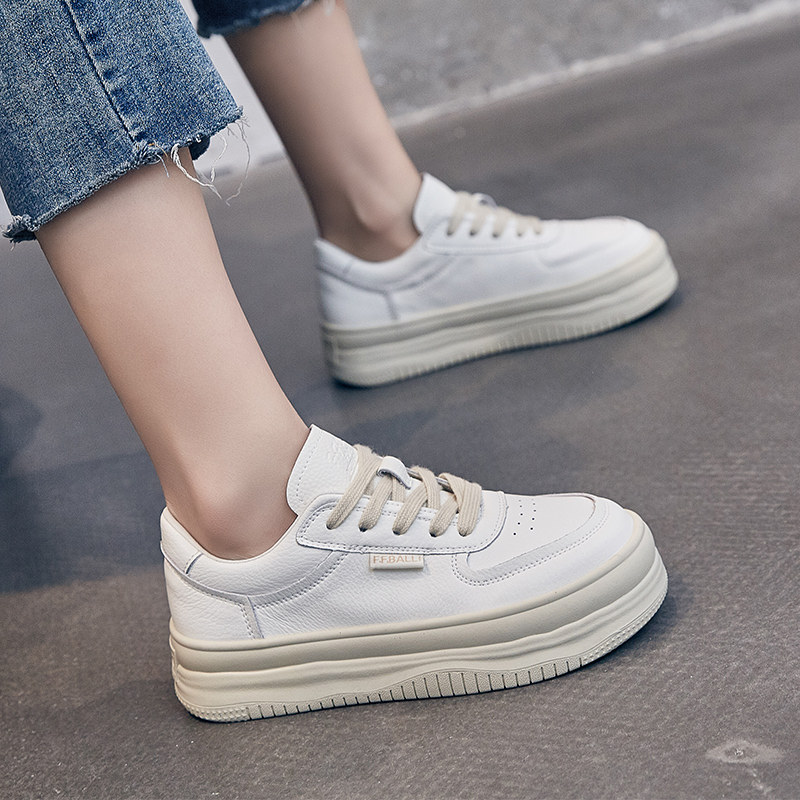 Hong Kong leather platform white shoes women's 2026 spring and autumn new versatile fashion height-increasing casual board shoes muffin shoes