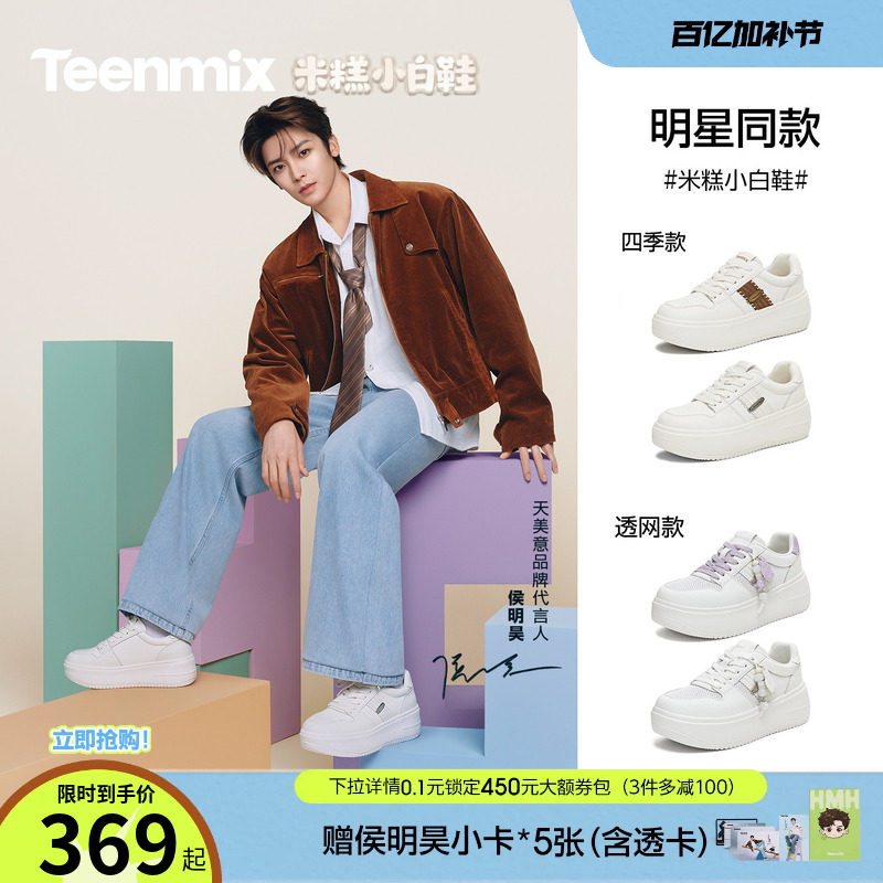 Hou Minghao's Tianmei mesh breathable rice cake white shoes with thick soles and heightened men's and women's casual sports shoes