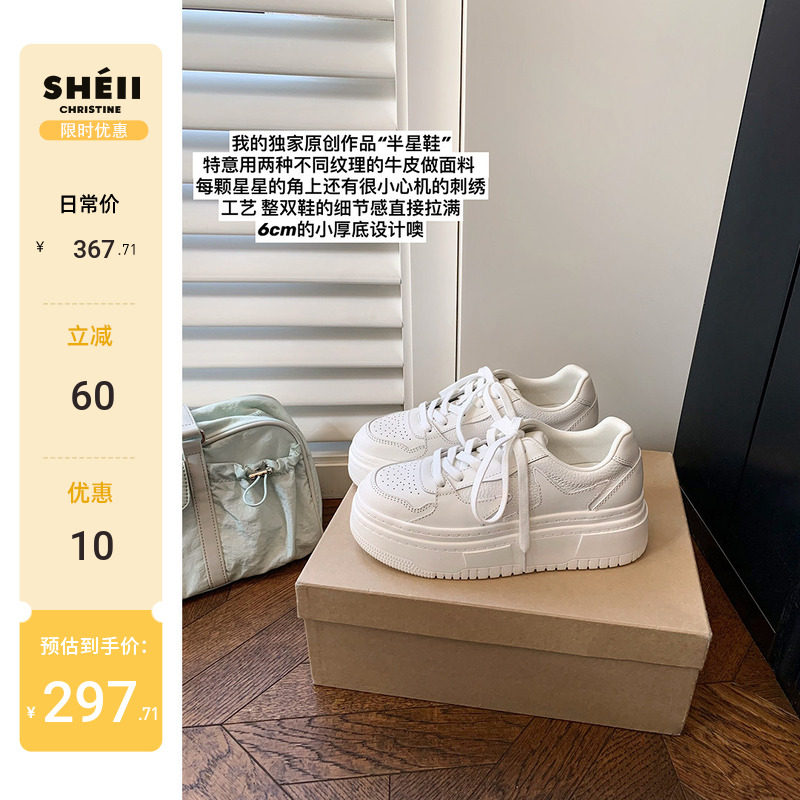 【sheii Su Yinyin】Ju Jingyi has the same style ~ original thick-soled cowhide casual board shoes, star shoes, women's white shoes
