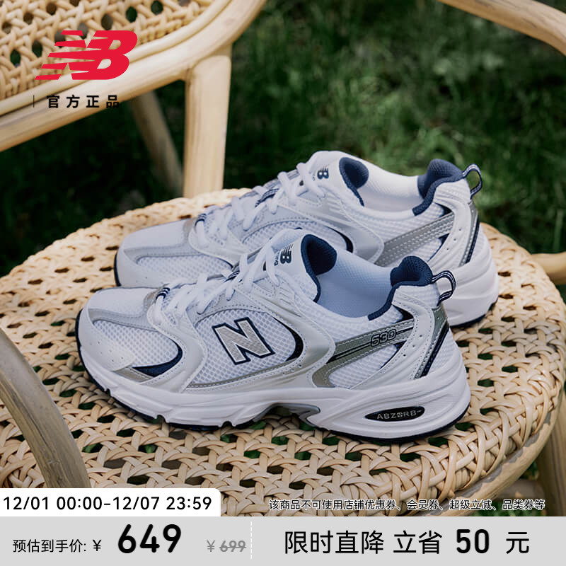 New Balance NB official genuine men's and women's couple silver retro athleisure dad shoes MR530KA
