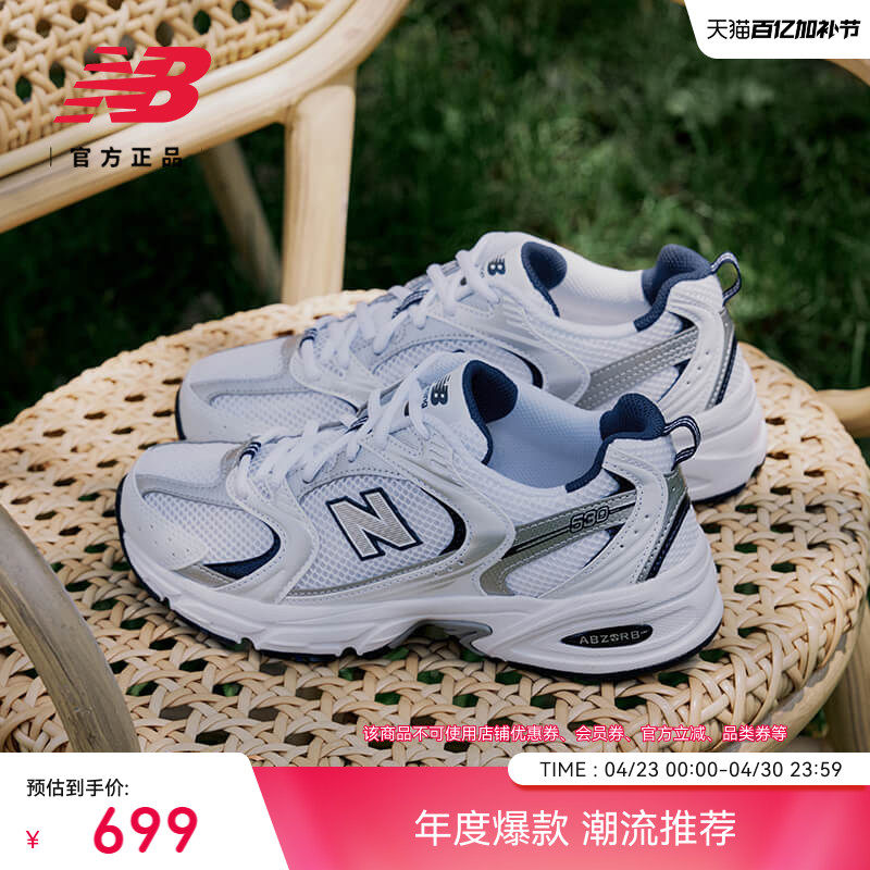 New Balance NB official men's and women's silver mesh breathable lightweight athleisure dad shoes MR530KA