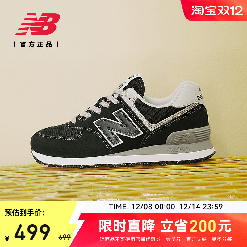 New Balance NB official genuine men's and women's couple retro versatile black casual shoes ML574EVB