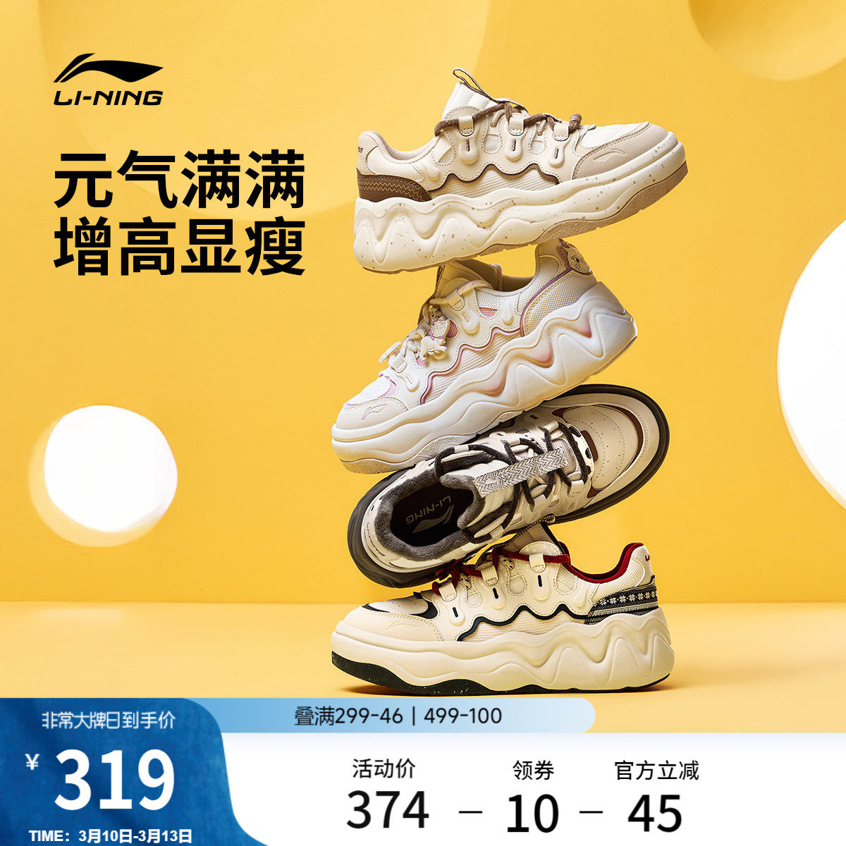 Li Ning cheese 3 platform shoes, bread shoes, board shoes, new dad shoes, women's shoes, spring casual shoes, height-increasing sneakers
