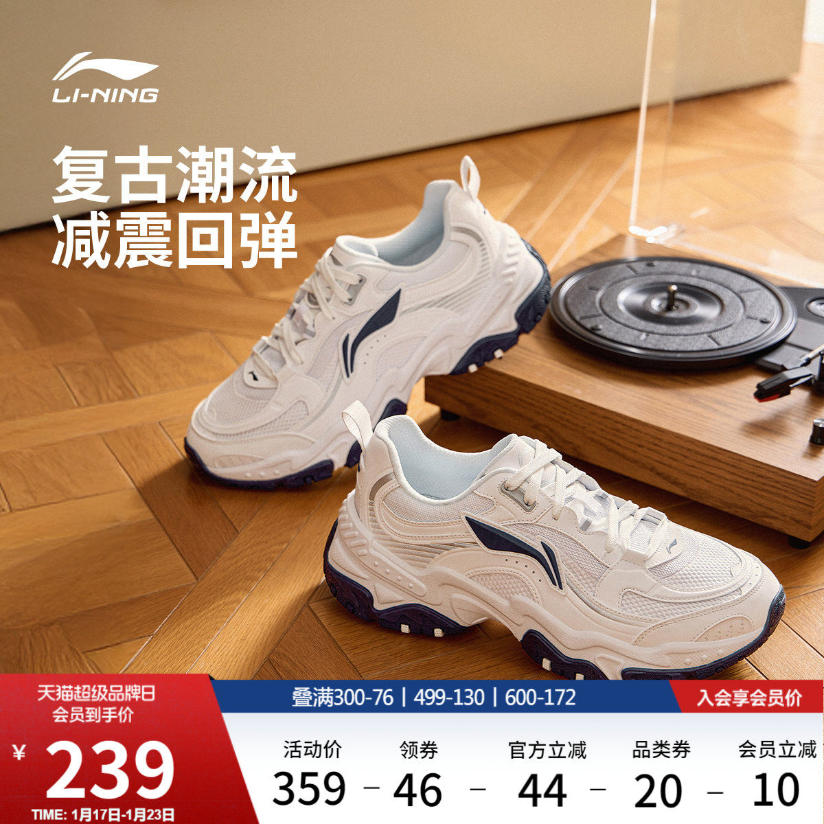 Li Ning Brown Sugar丨Casual shoes, men's shoes, winter new retro daddy shoes, shock-absorbing rebound, thick-soled heightening sneakers