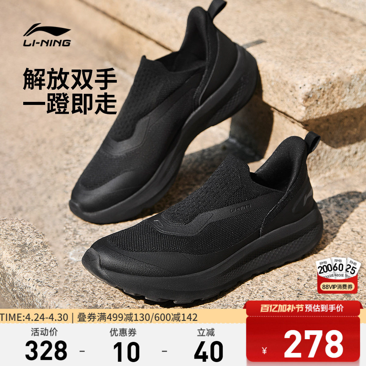 Li Ning Yunyi SLIPON丨Casual shoes men's shoes 2026 new lazy trend one-foot running sports shoes