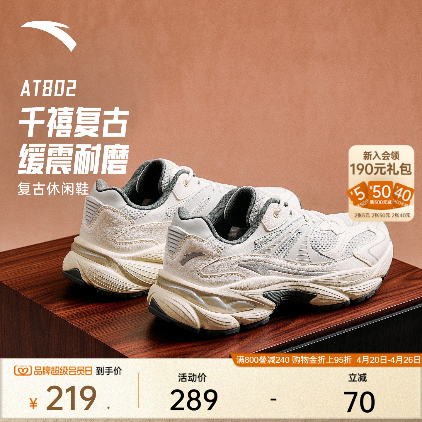ANTA AT802丨Retro running shoes trendy men's casual shoes, summer thick-soled heightened, cushioned, wear-resistant sneakers