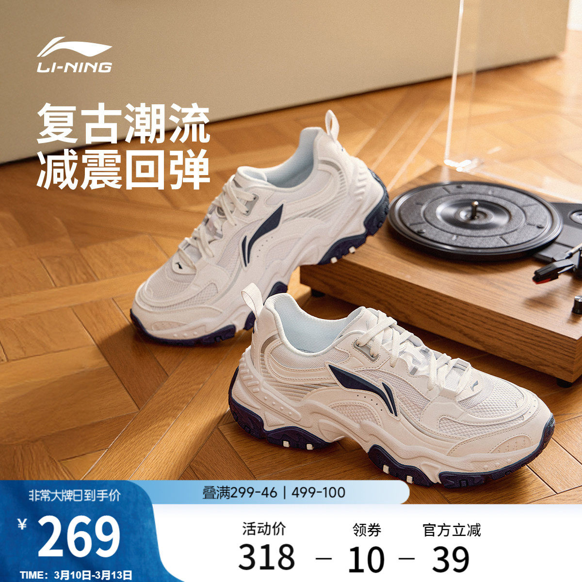 Li Ning Brown Sugar丨Casual shoes, men's shoes, new retro daddy shoes, shock-absorbing rebound, thick-soled heightening running sneakers