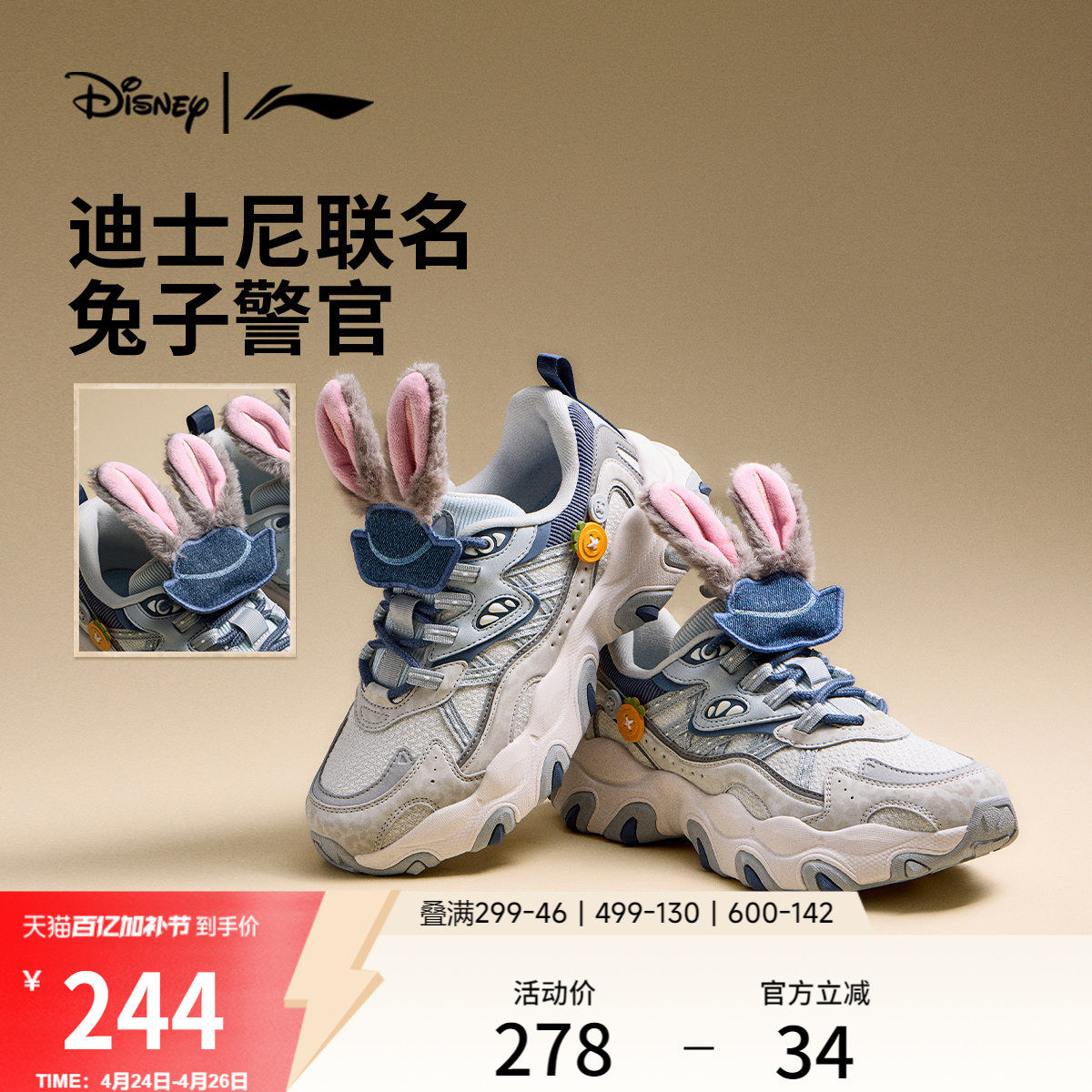 Li Ning Cat Claw LITE3 Zootopia Co-branded|Casual Shoes Women's New Retro Daddy Shoes Platform Sneakers