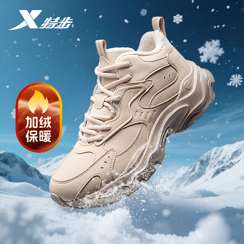 Xtep nomad cotton shoes, men's shoes, winter high-top fleece warm daddy shoes, big cotton outdoor sneakers, casual shoes