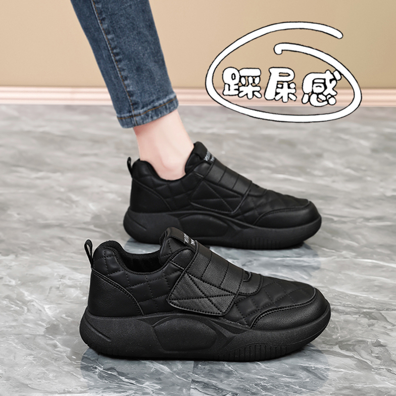 Women's shoes fall and winter all-black kitchen non-slip waterproof leather work shoes do not tire your feet to go to work, soft sole plus size sneakers
