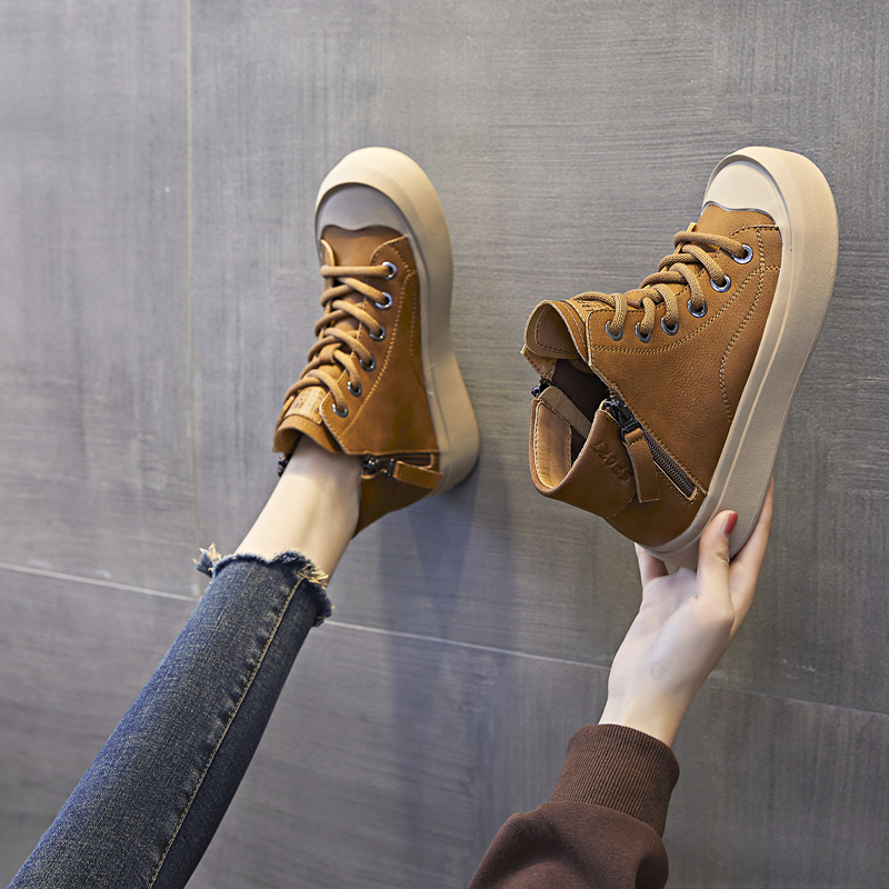 Shoes, women's 2025 new explosive autumn and winter models, versatile high-top 43 plus size board shoes, 41 feet wide leather soft-soled booties