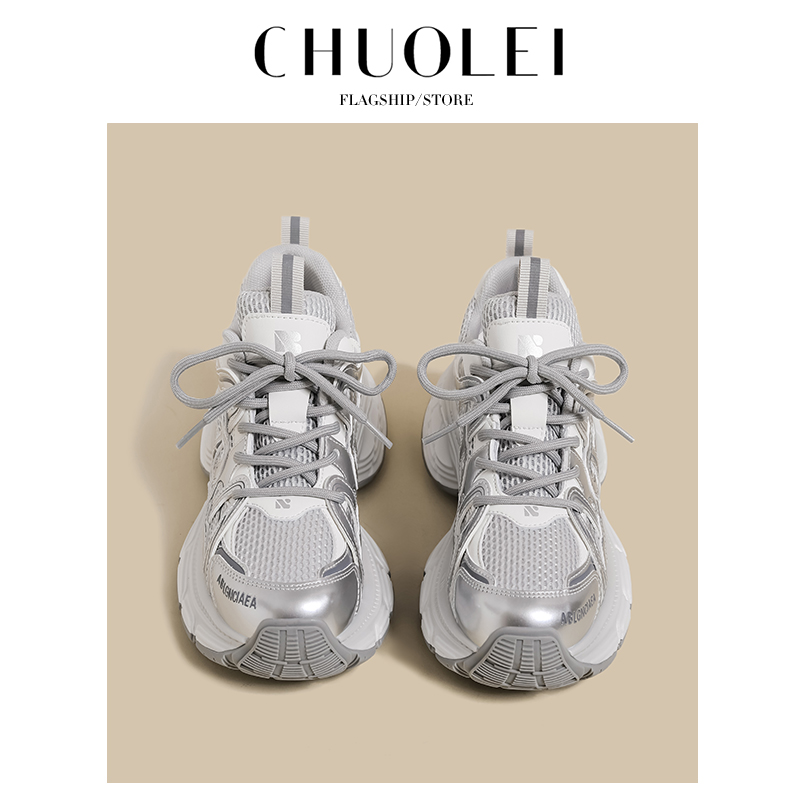 Thick-soled daddy shoes women's new 2025 spring small silver versatile height-increasing wide-leg pants casual sneakers