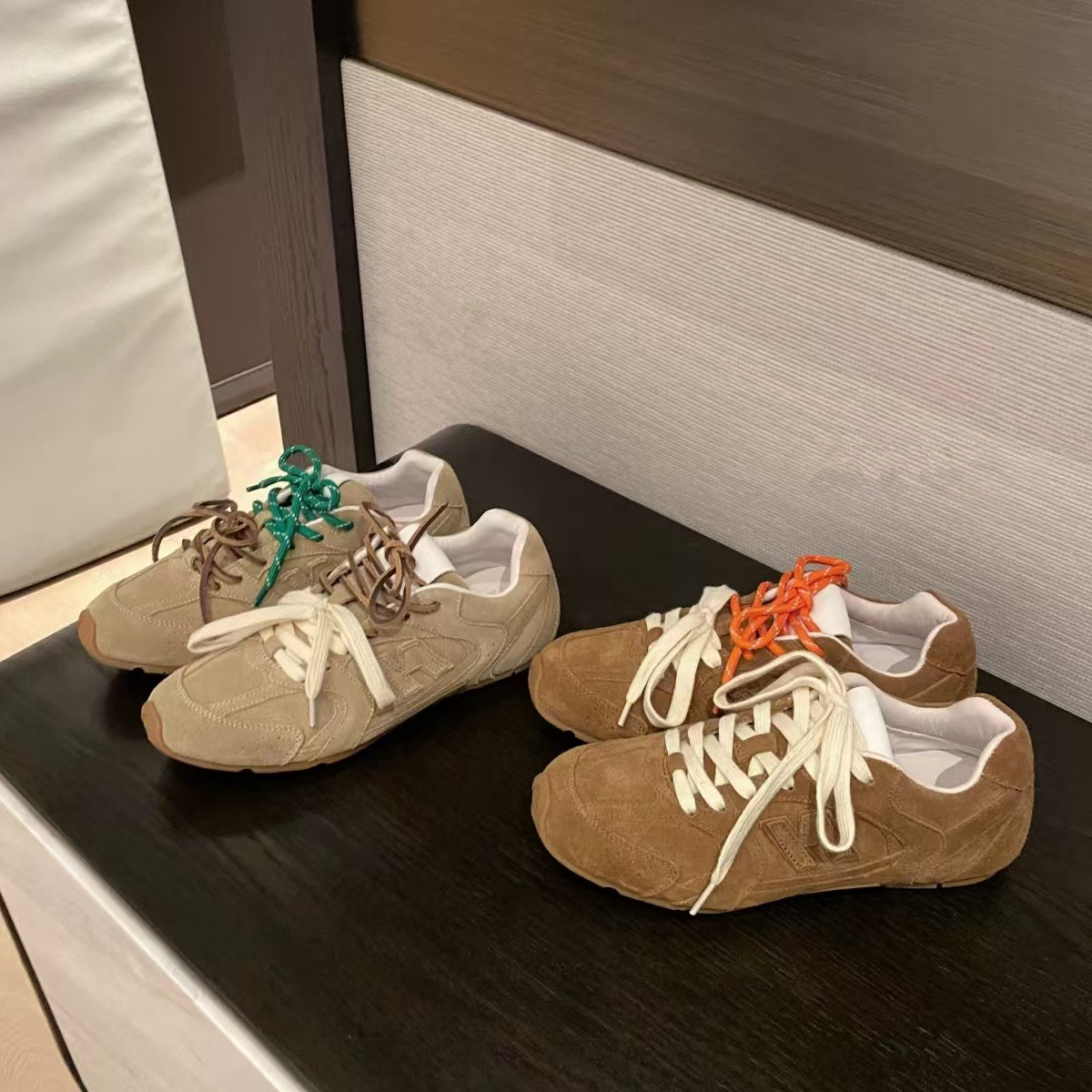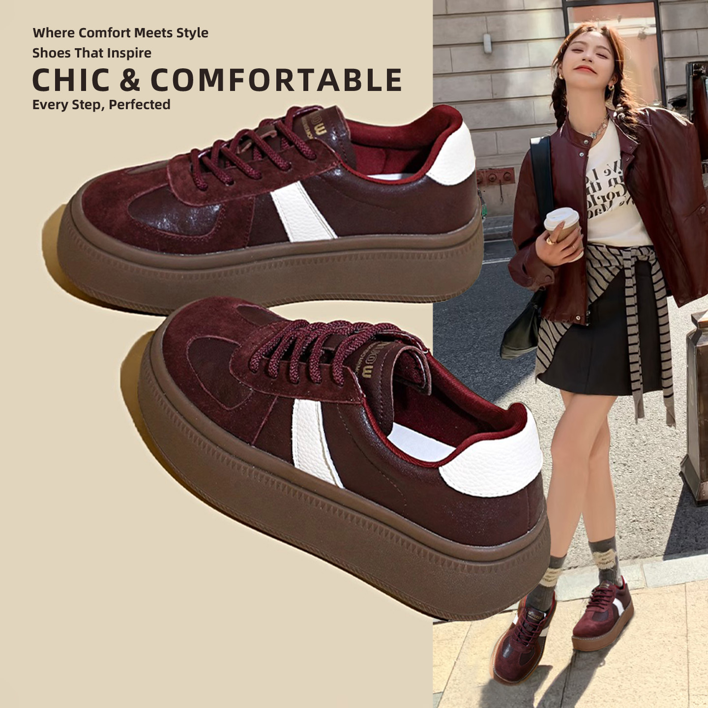 JWNM Genuine Leather Daddy Shoes Women's 2025 Fall/Winter New Thick Sole Color-Blocking Versatile King Size Thickened Athleisure Shoes