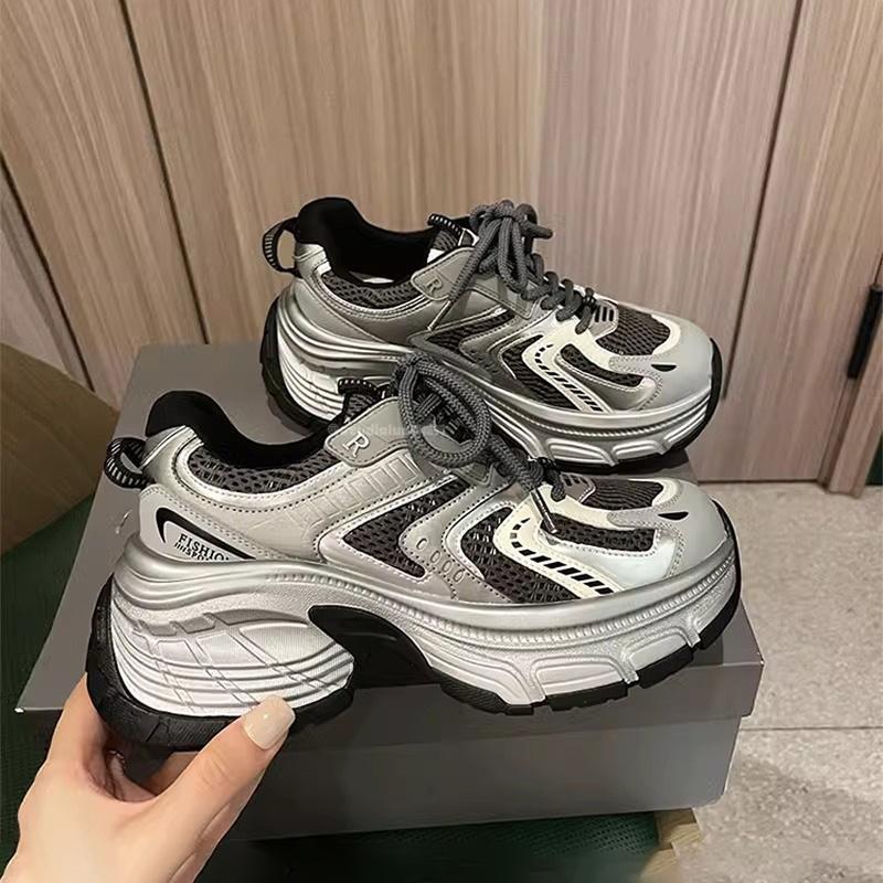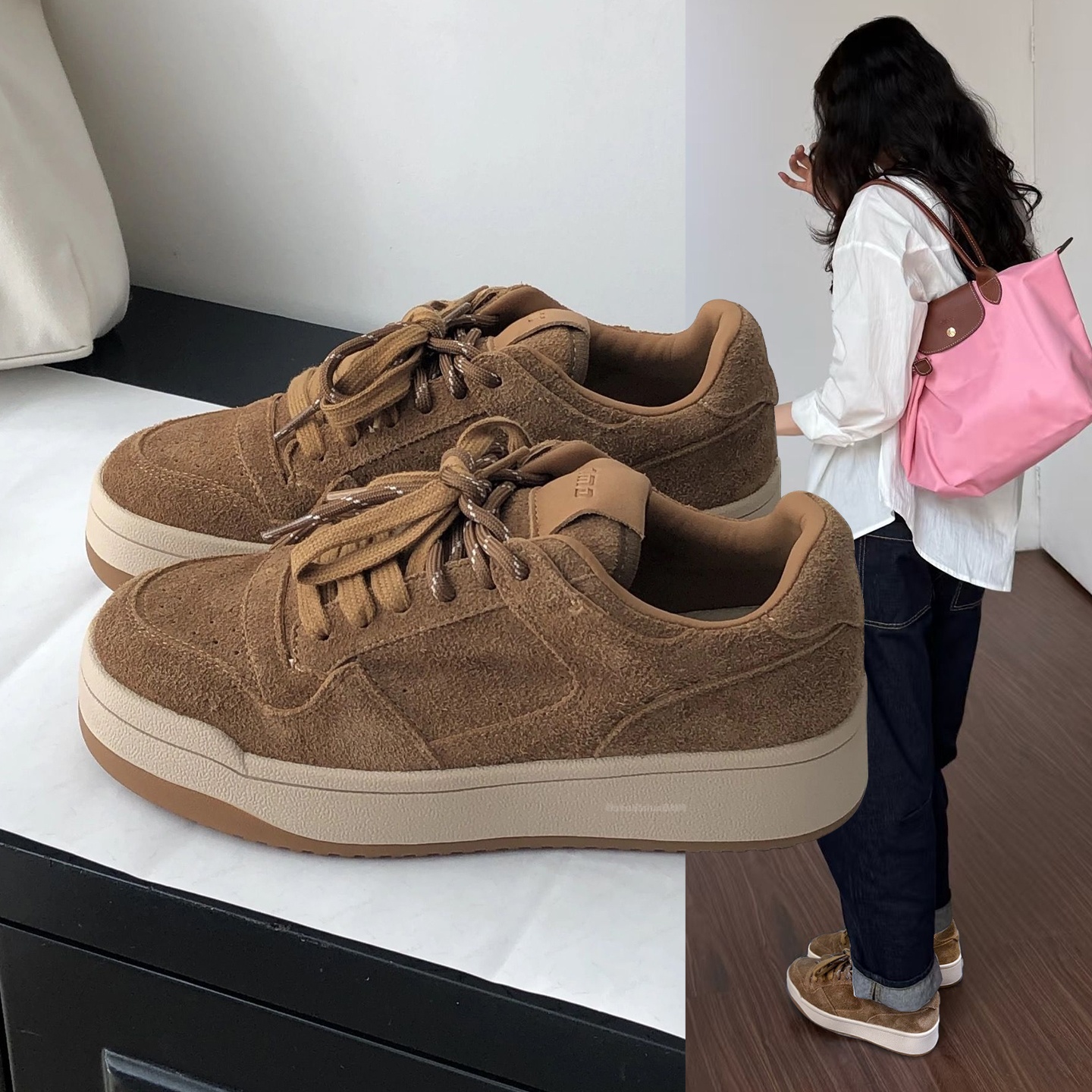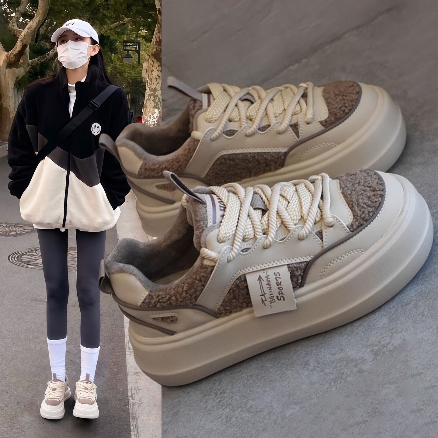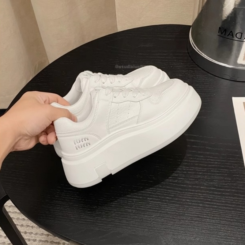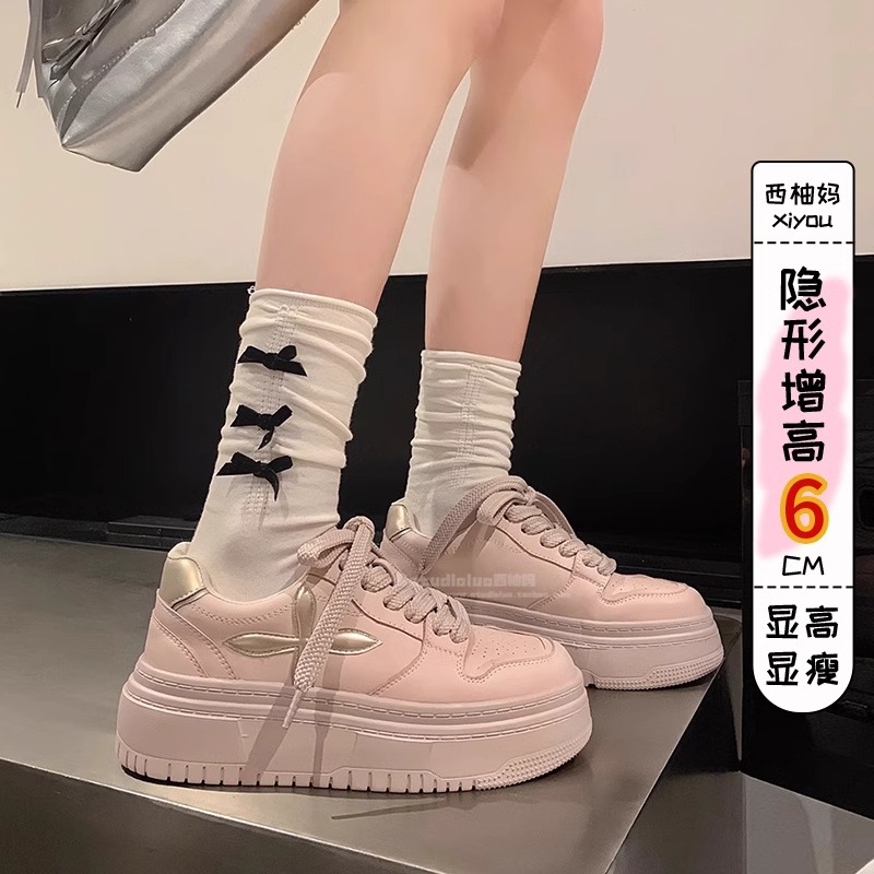 Hong Kong leather platform sole heightening white shoes women's 2025 spring and autumn casual board shoes, soft soles, lightweight bread shoes, muffin shoes