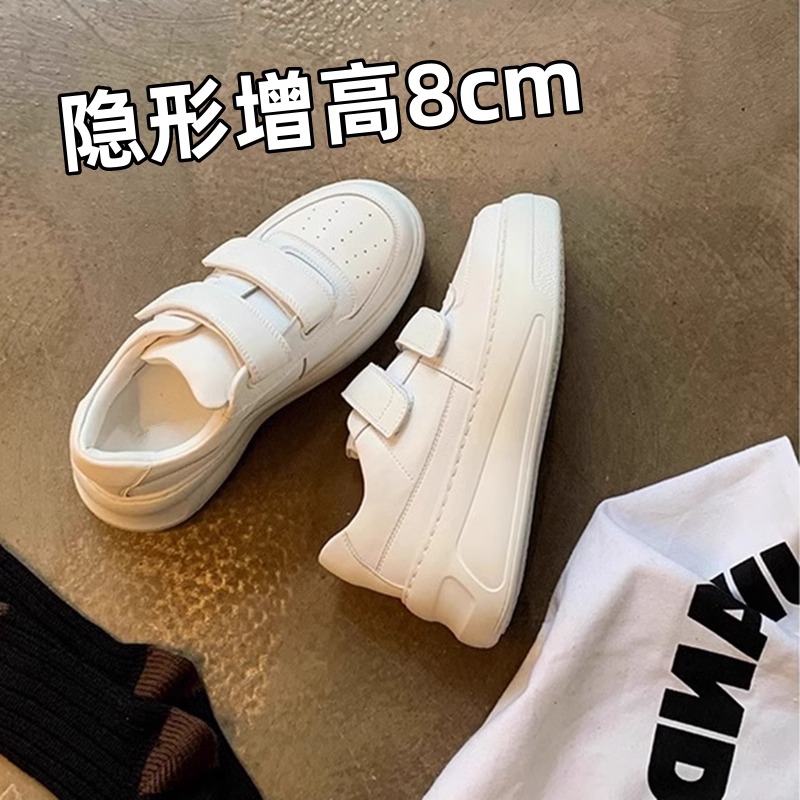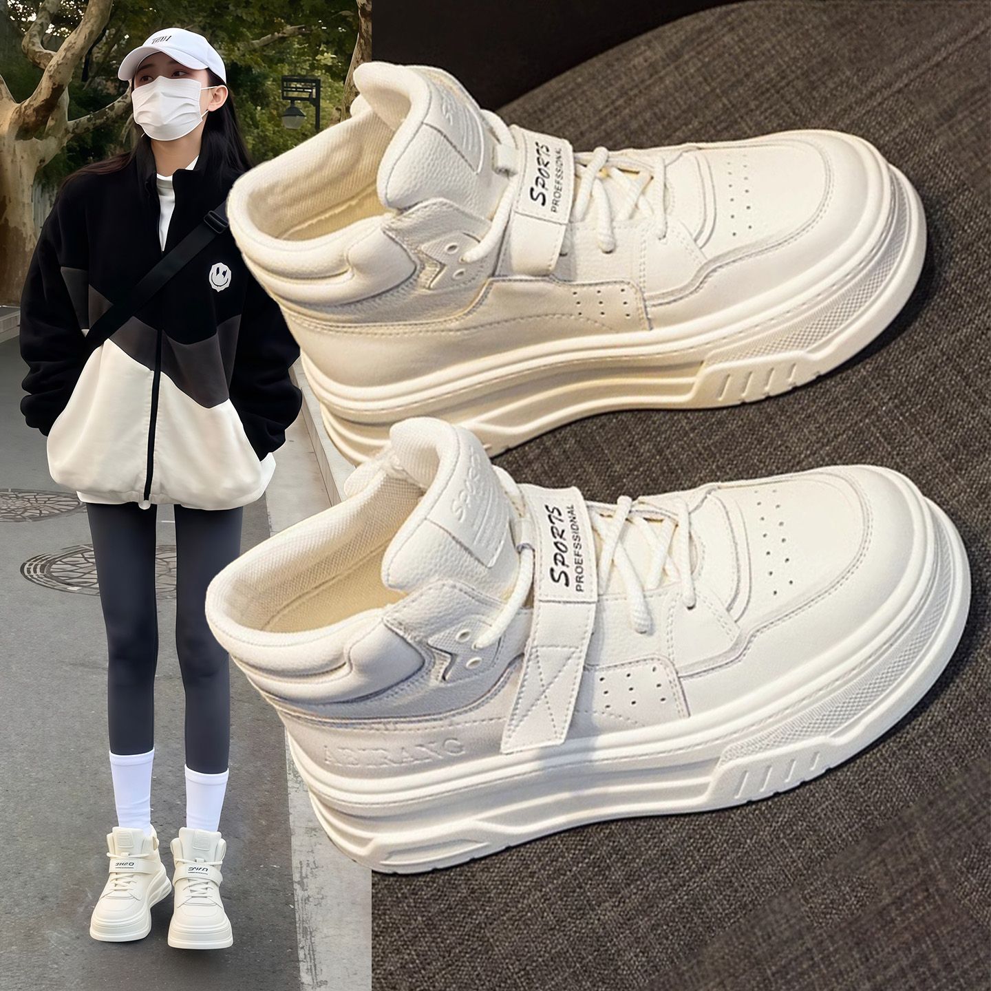 Hong Kong leather white shoes high-top shoes women's 2025 new spring thick-soled versatile Velcro athleisure board shoes