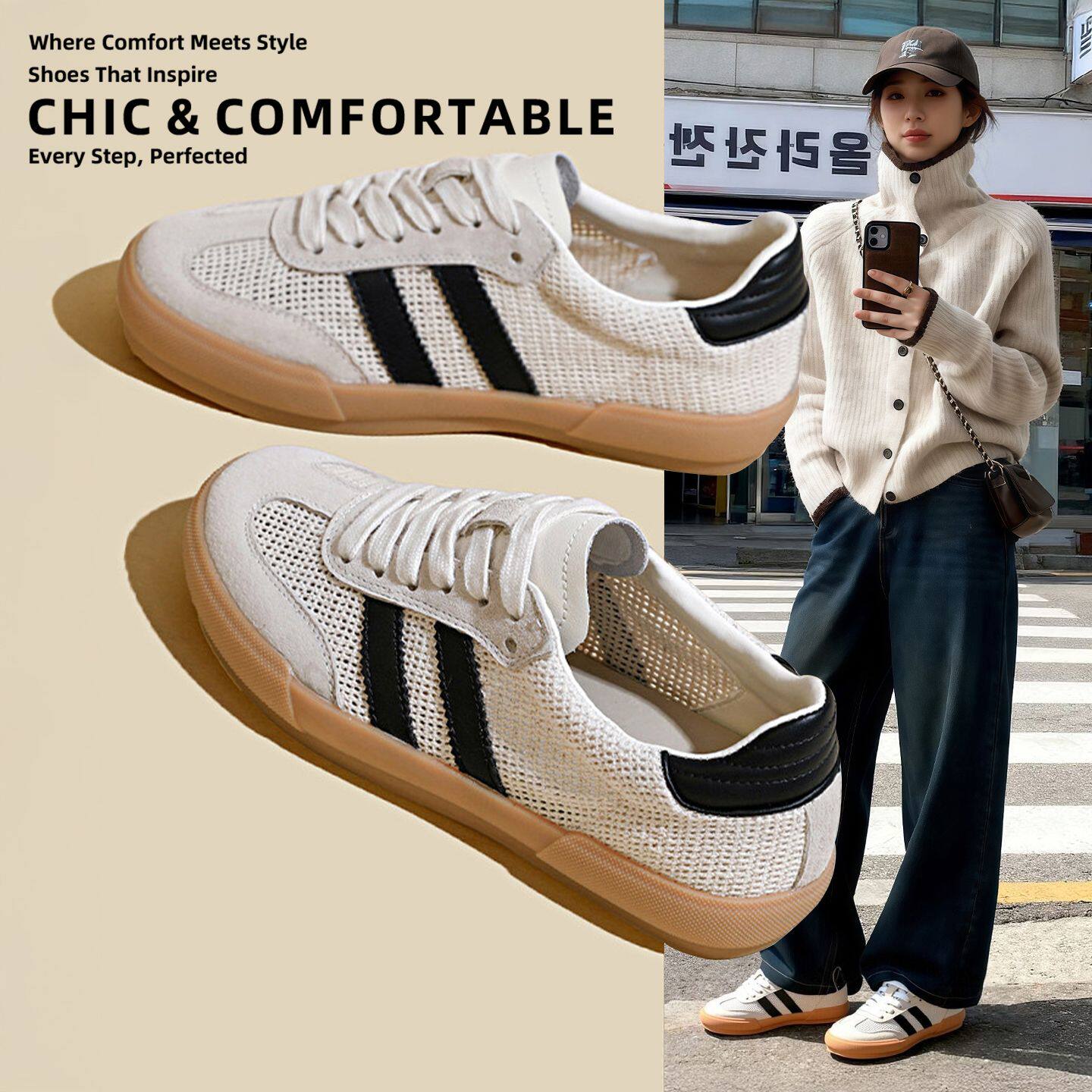 Hong Kong flat round toe lace-up German training shoes women's 2026 spring and autumn new retro versatile casual shoes mid-mouth sneakers