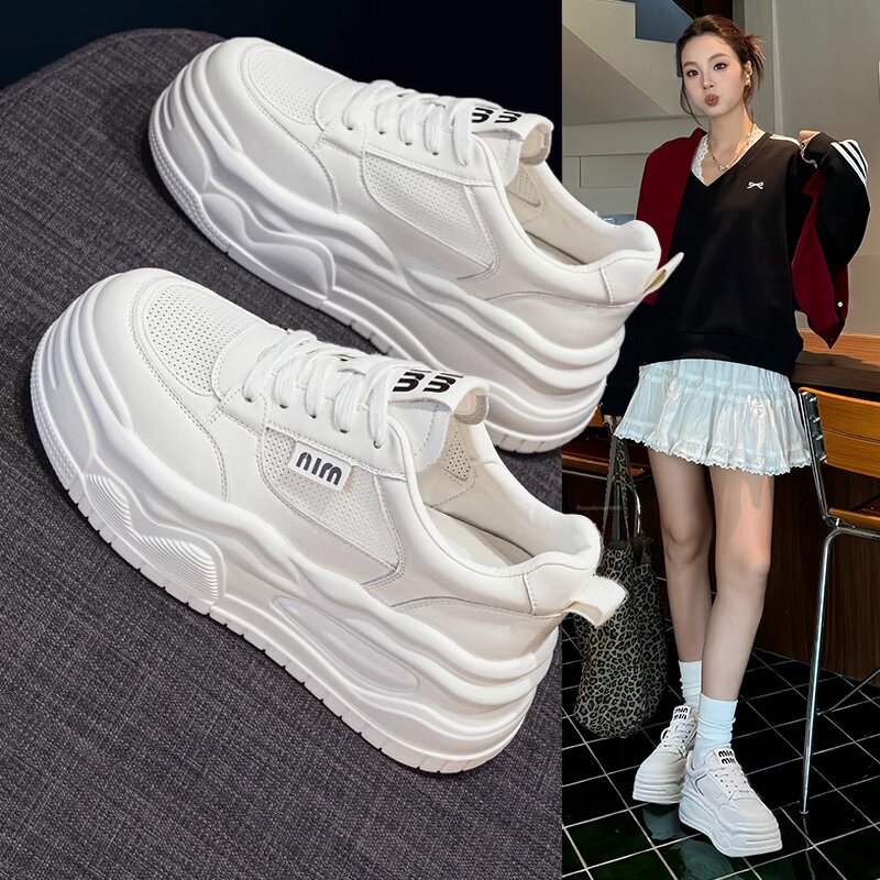 Hong Kong platform sole inner height increase white shoes women's 2026 spring and autumn new breathable sports small mesh casual board shoes