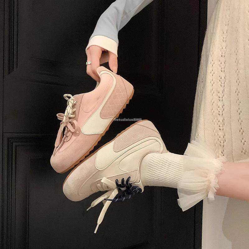 Hong Kong retro soft-soled casual shoes women's 2026 spring and autumn candy-colored mango head German training shoes double laces plush cotton shoes