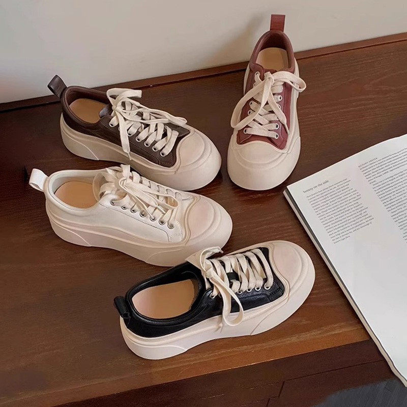Sanli thick-soled white shoes women's 2026 spring new lightweight and comfortable bread round toe versatile soft-soled lace-up board shoes