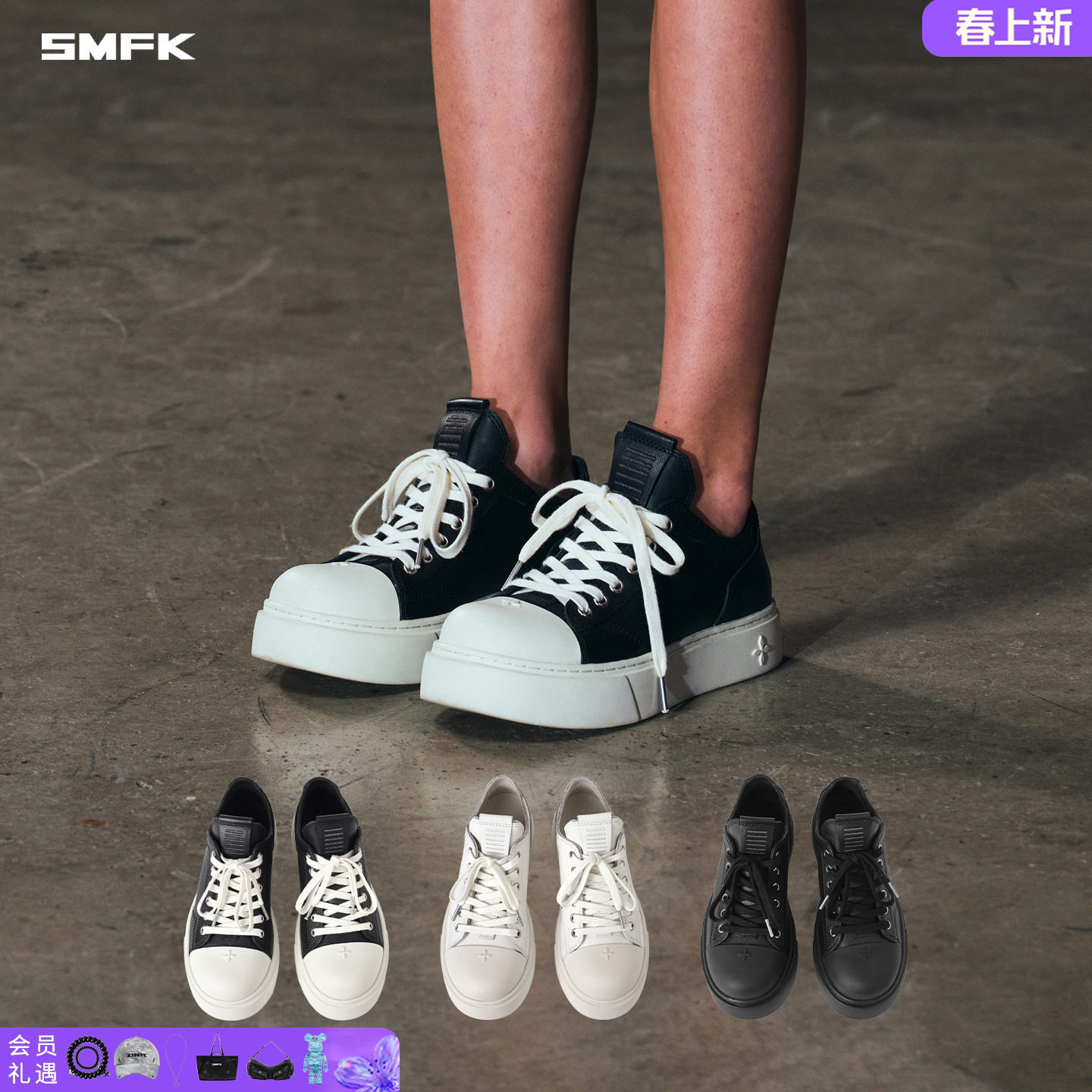 SMFK statue leather low-top sneakers S0001BW4/W4/BB1 cowhide black and white classic are available in three colors