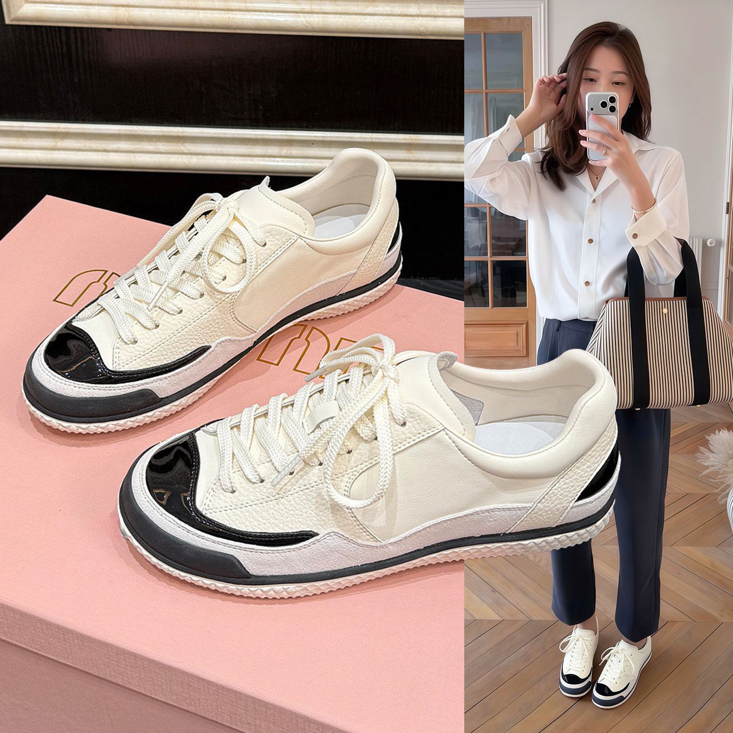 Italy SANLI ~ simple temperament casual German training shoes women's round toe lace-up does not tire feet and is versatile lightweight sneakers