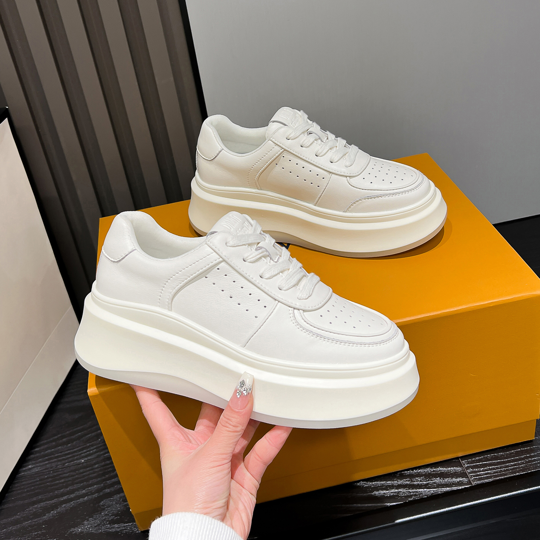 Thick-soled white shoes women's shoes 2025 new spring and autumn muffin shoes with increased height in the inner layer of autumn and winter white board shoes are versatile leather