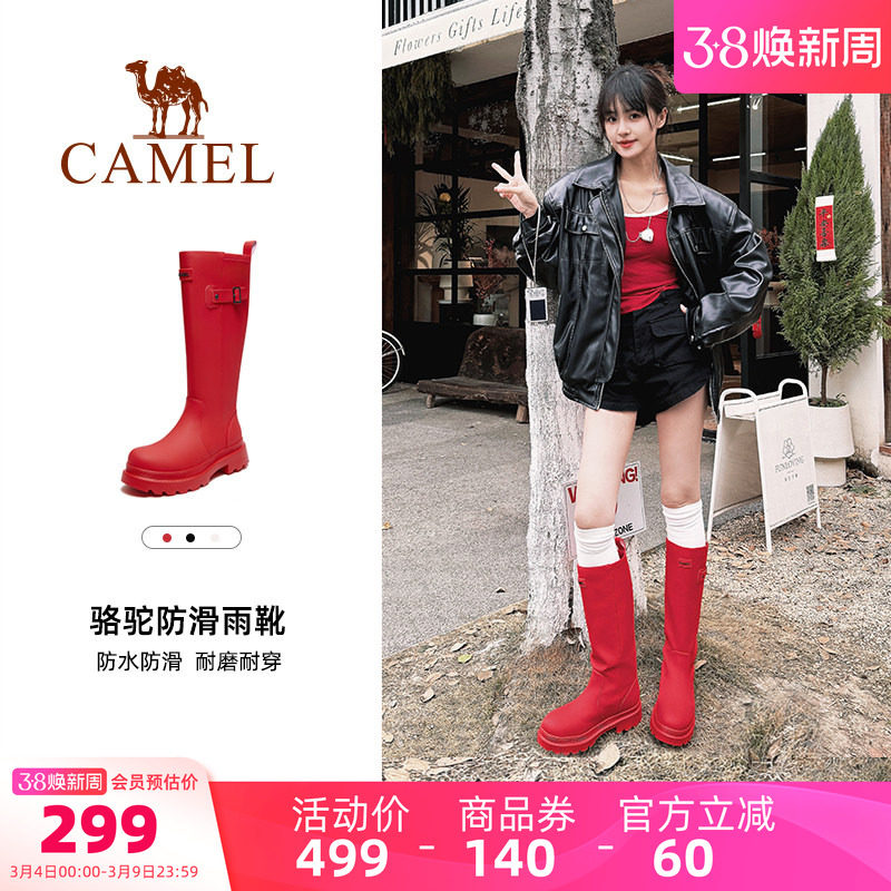 Camel rain god rain boots New Year's red combat boots high-appearance outdoor shoes women's wading shoes waterproof non-slip boots