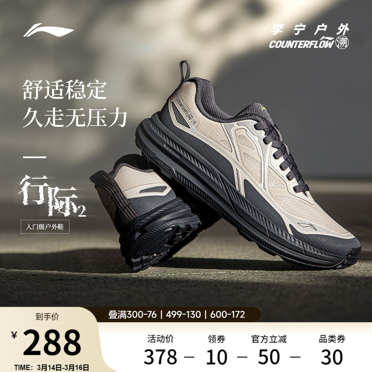 Li Ning outdoor CF trace|Xingjian 2 casual shoes men's non-slip shock-absorbing, lightweight and breathable low-top hiking sneakers