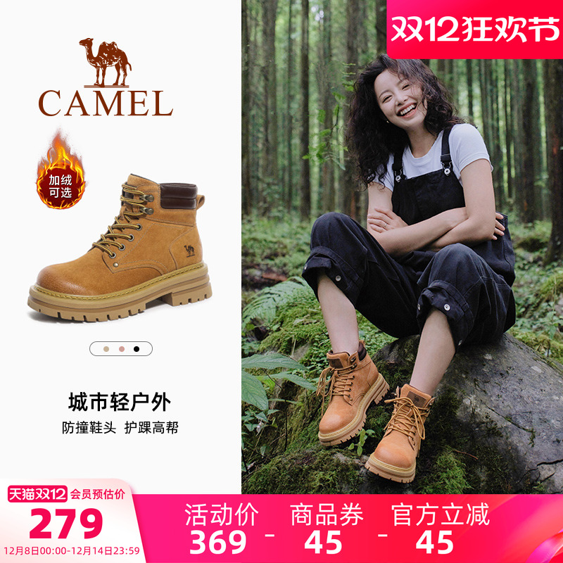 Camel rhubarb boots, Martin boots, women's 2025 new British-style winter platform boots, hiking shoes, cargo booties