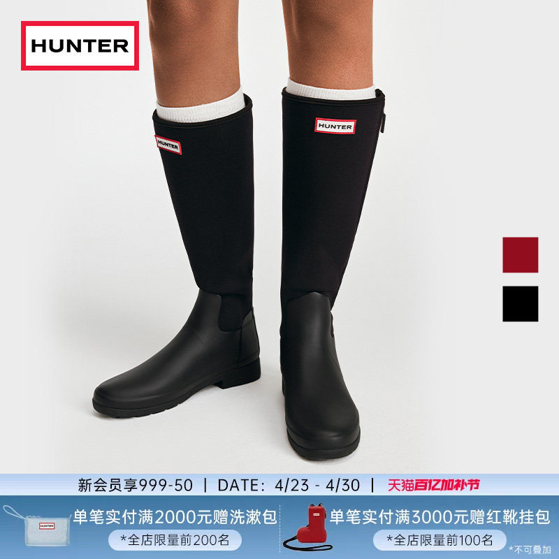 HUNTER Women's Rain Boots Outdoor Shoes Refined High Boots Zipper Panel Boots Women's Boots Rain Boots