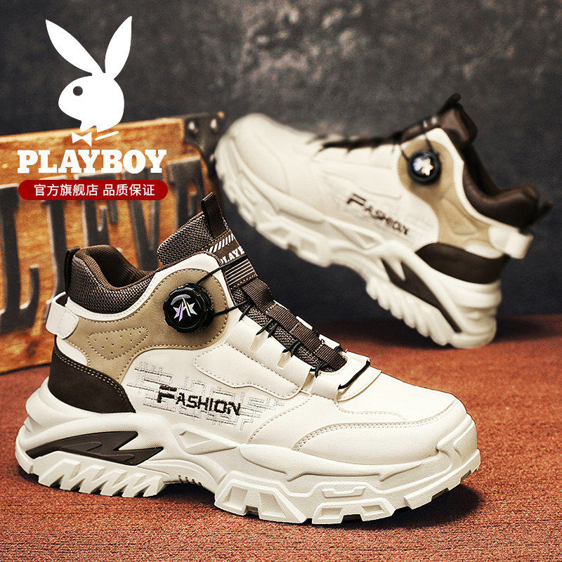 Playboy high-top men's shoes winter fleece swivel button daddy shoes platform sole climaxing brand casual sneakers