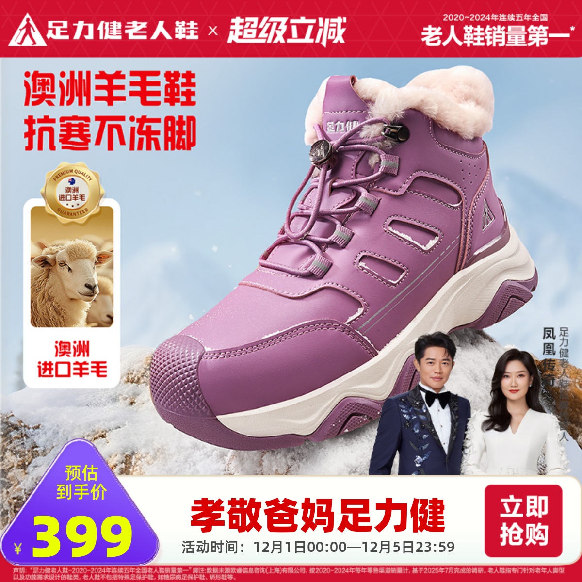 Zulijian flagship store 2025 winter cotton shoes, women's sports high-top wool shoes, plush thickened shoes for the elderly, warm up