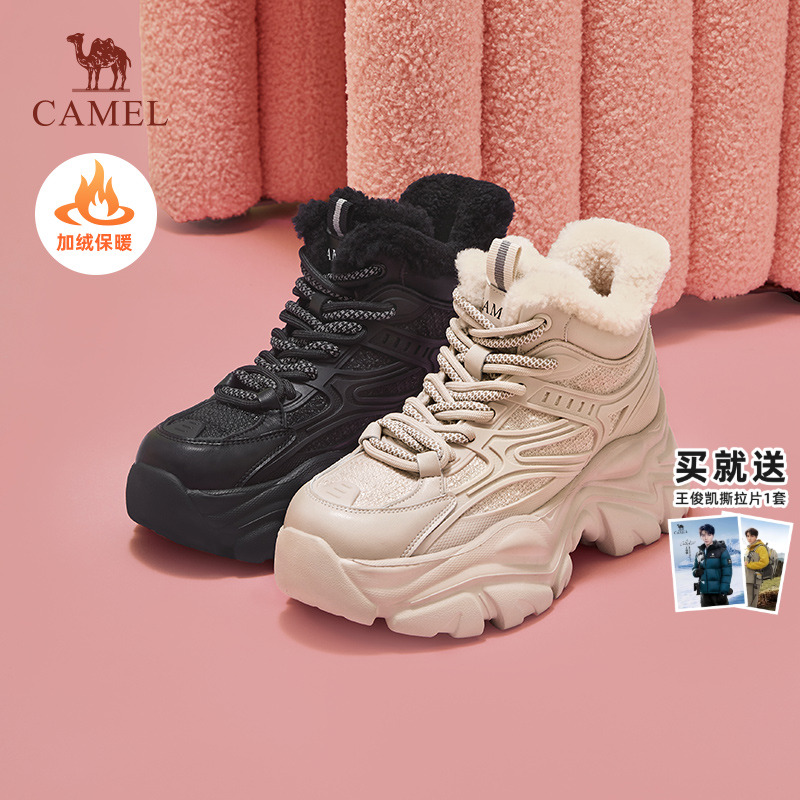 Camel women's shoes 2025 autumn and winter new fleece daddy shoes women's platform cotton shoes women's high shoes warm snow boots