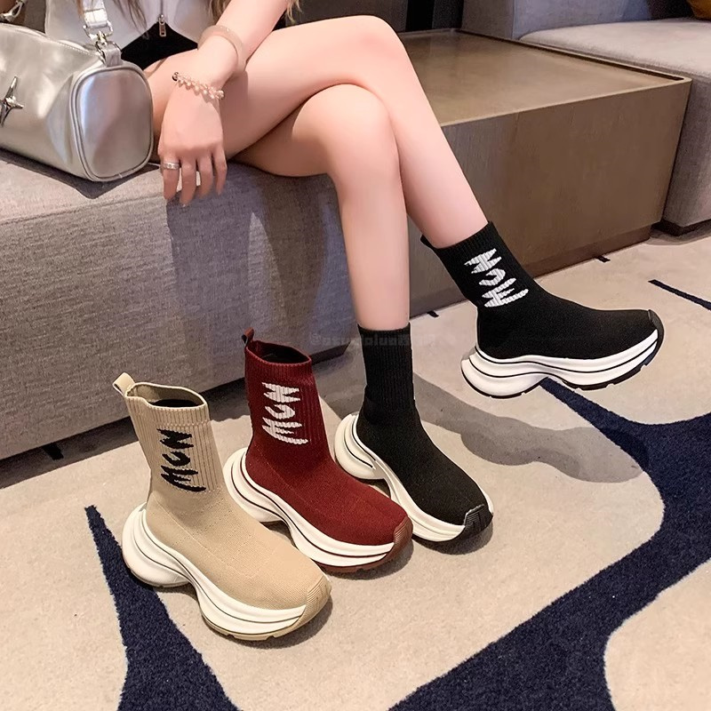 Hong Kong 2025 fly knitted breathable single boots, muffins, platform socks, boots, short boots, women's skinny boots, knitted casual high-tops