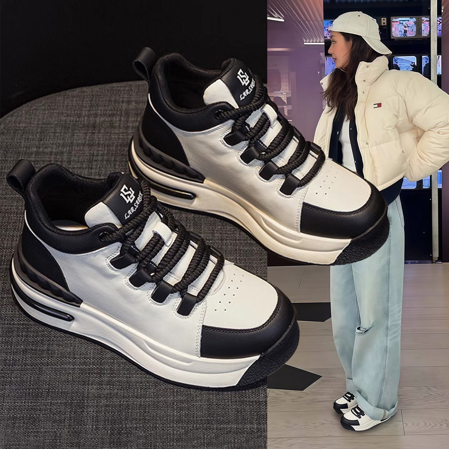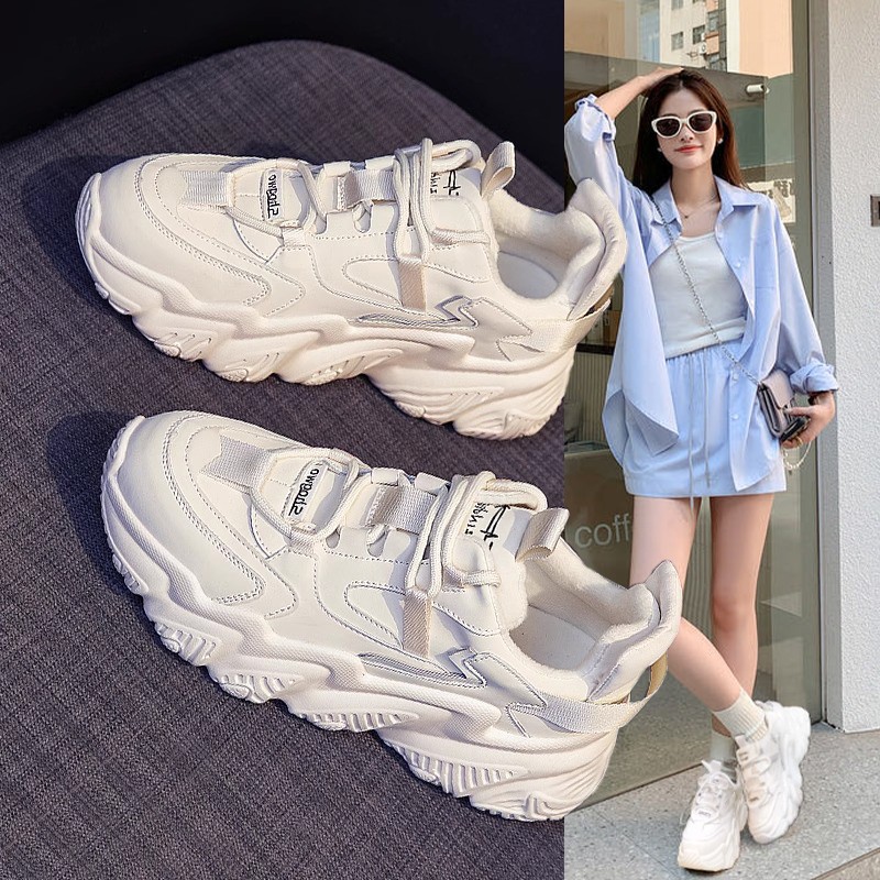 Hong Kong white shoes female small height increase daddy shoes 2025 new spring and autumn leather breathable sports casual shoes