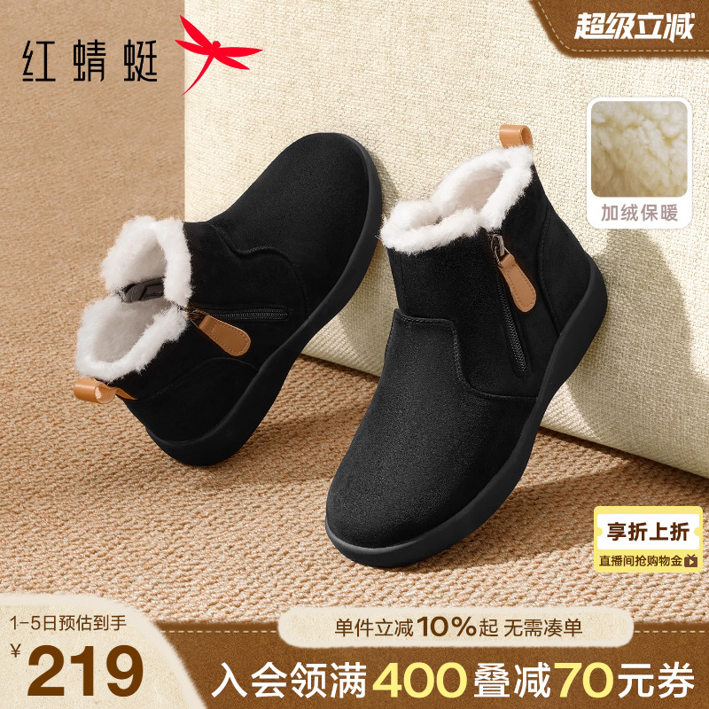 Red dragonfly mother cotton shoes, winter new fleece women's shoes, warm middle-aged and elderly shoes, non-slip snow boots for the elderly