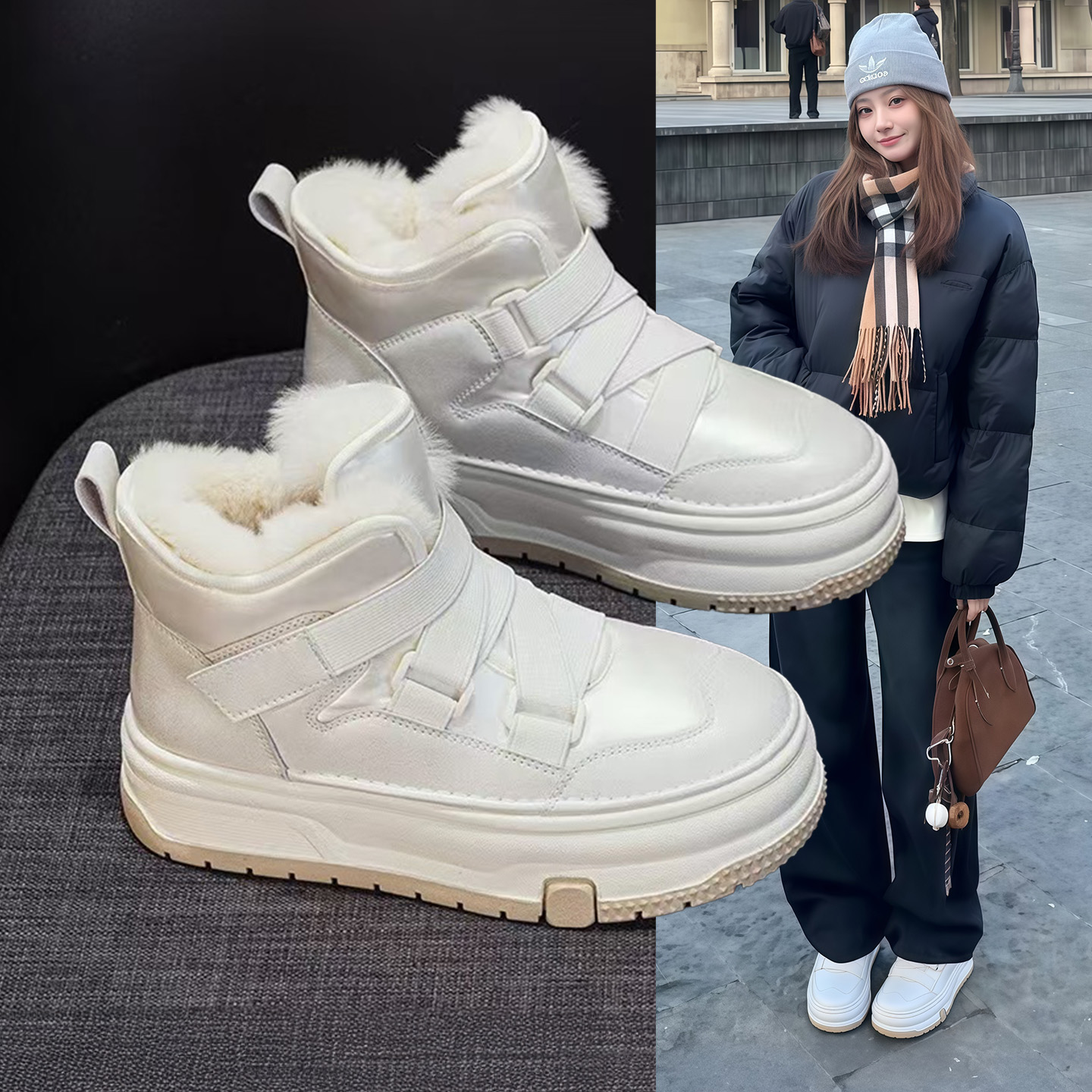 Hong Kong thick-soled heightened snow boots women's 2025 winter new fleece thickened popular martin boots small white cotton shoes boots