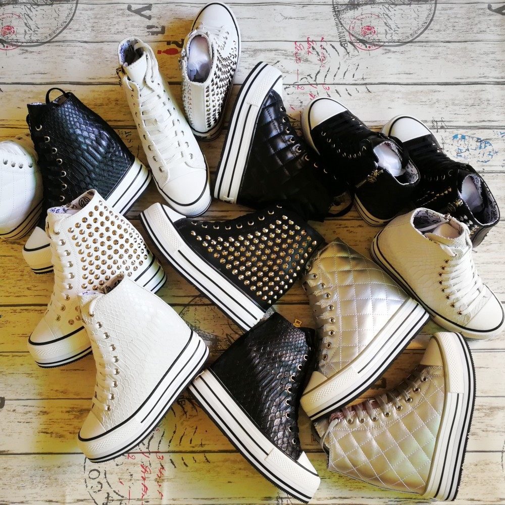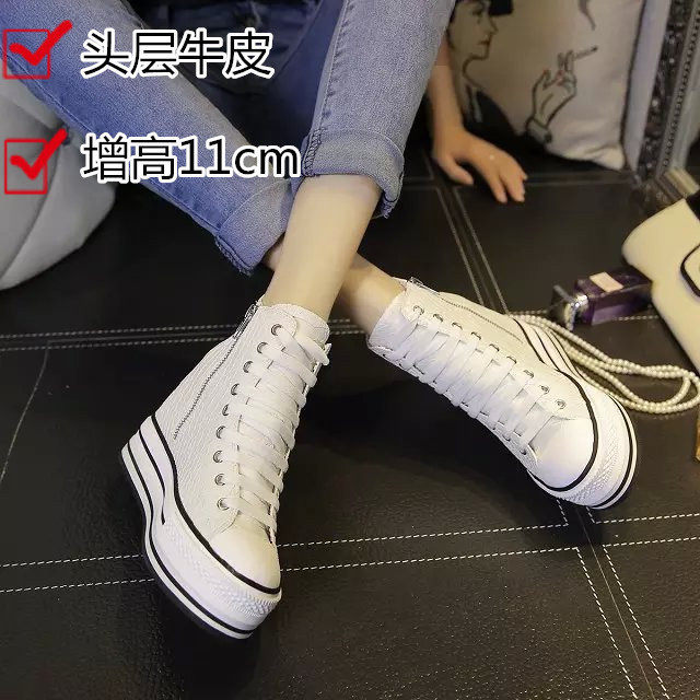 European station invisible inner height increase women's shoes 10cm riveted high top shoes thick sole small man versatile slim casual shoes women