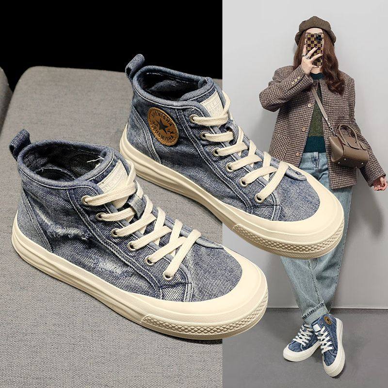 Hong Kong Xiao Zhan same high-top shoes, canvas shoes, women's 2026 spring and autumn breathable heightened muffin shoes, casual sneakers