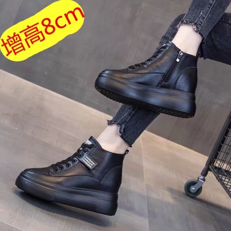 Trendy leather high-top shoes women's inner height increased by 8cm thick sole 2026 spring and autumn new Korean version of ins casual sports shoes