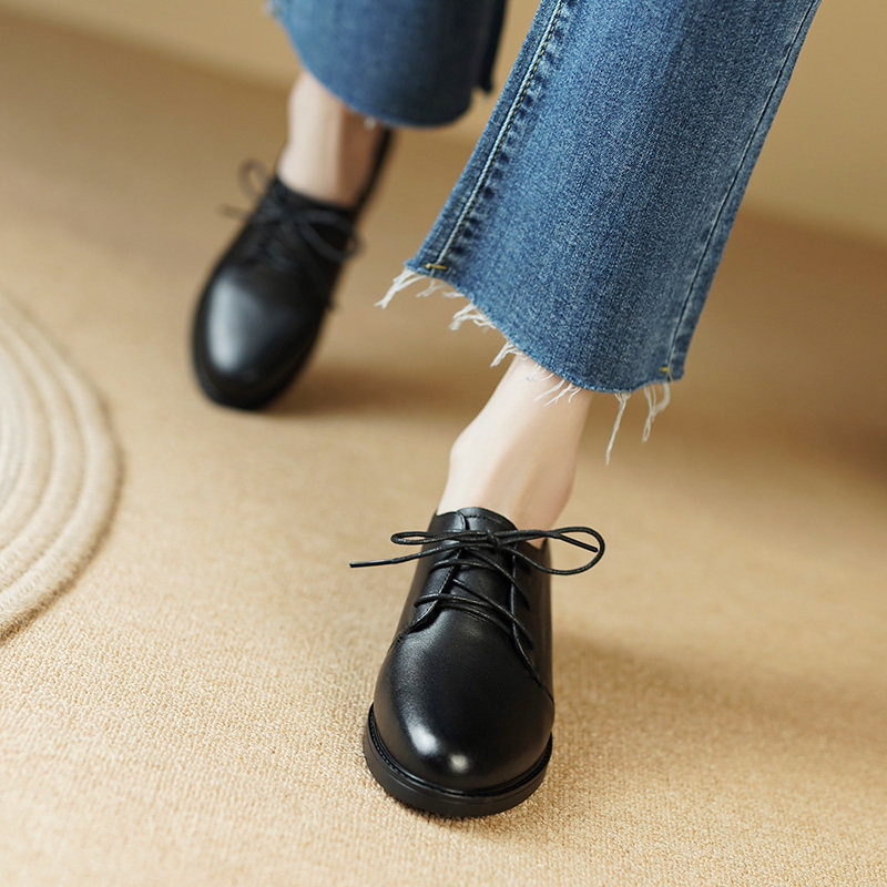 Silent black lace-up 3.5cm work shoes high heels thick heels round toe deep mouth single shoes interview civil servant uniform shoes