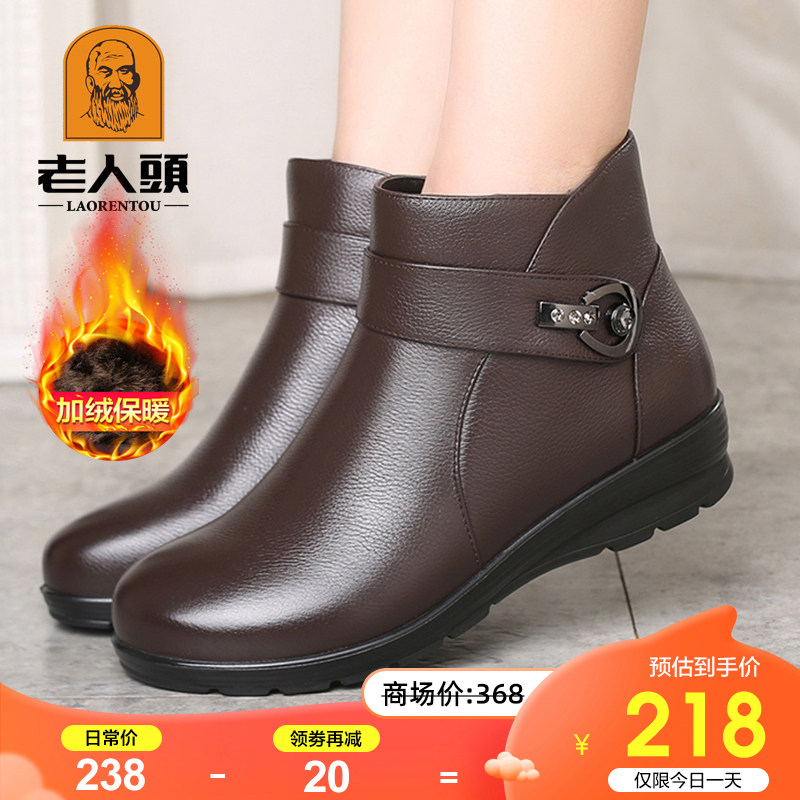 Elderly head women's shoes, winter mother cotton shoes, leather fleece warm women's boots, middle-aged and elderly soft soles, non-slip cotton leather shoes, women