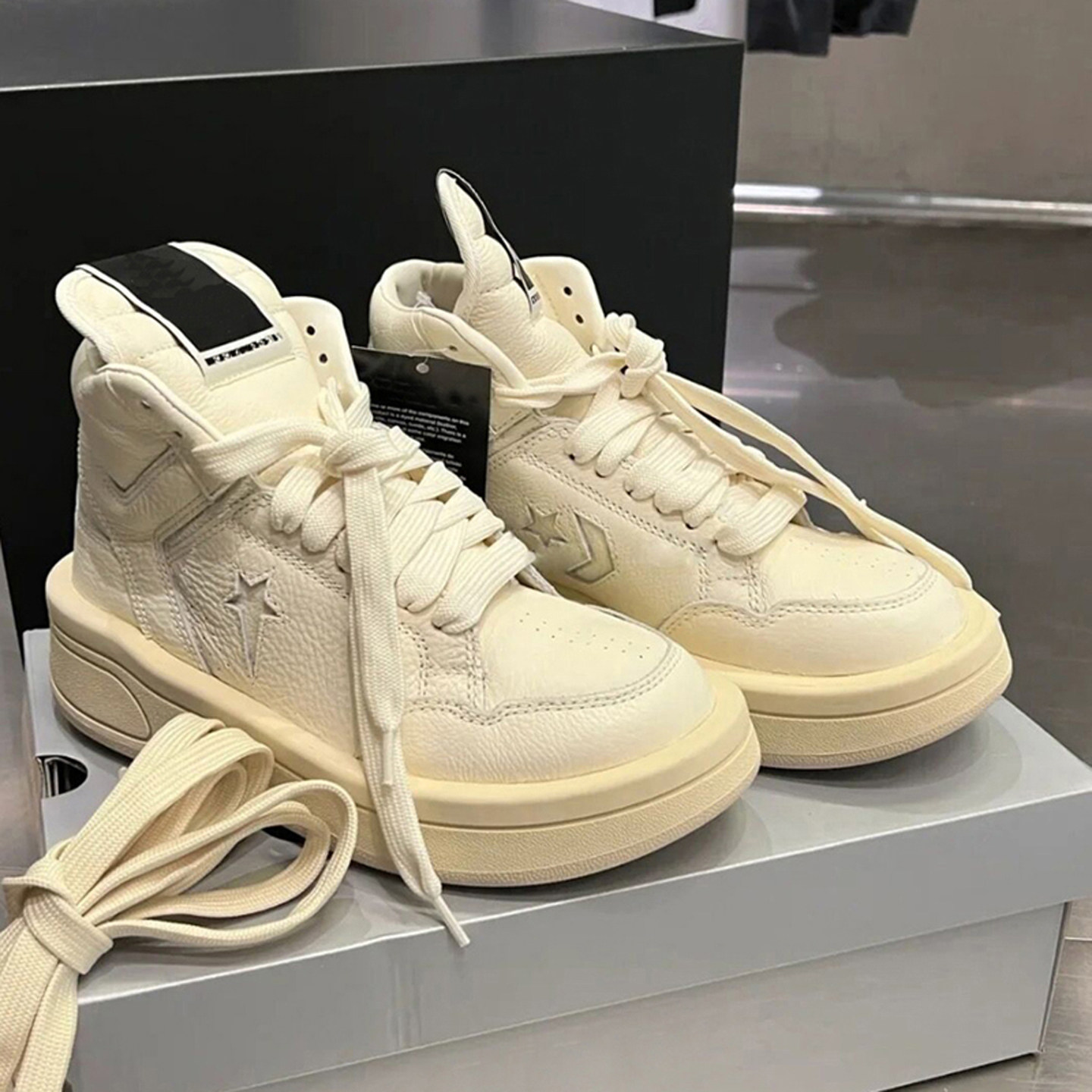 2026 new RO co-branded high-top shoeswomen's leather thick-soled heightened couple board shoes, white shoes, sports casual men's shoes