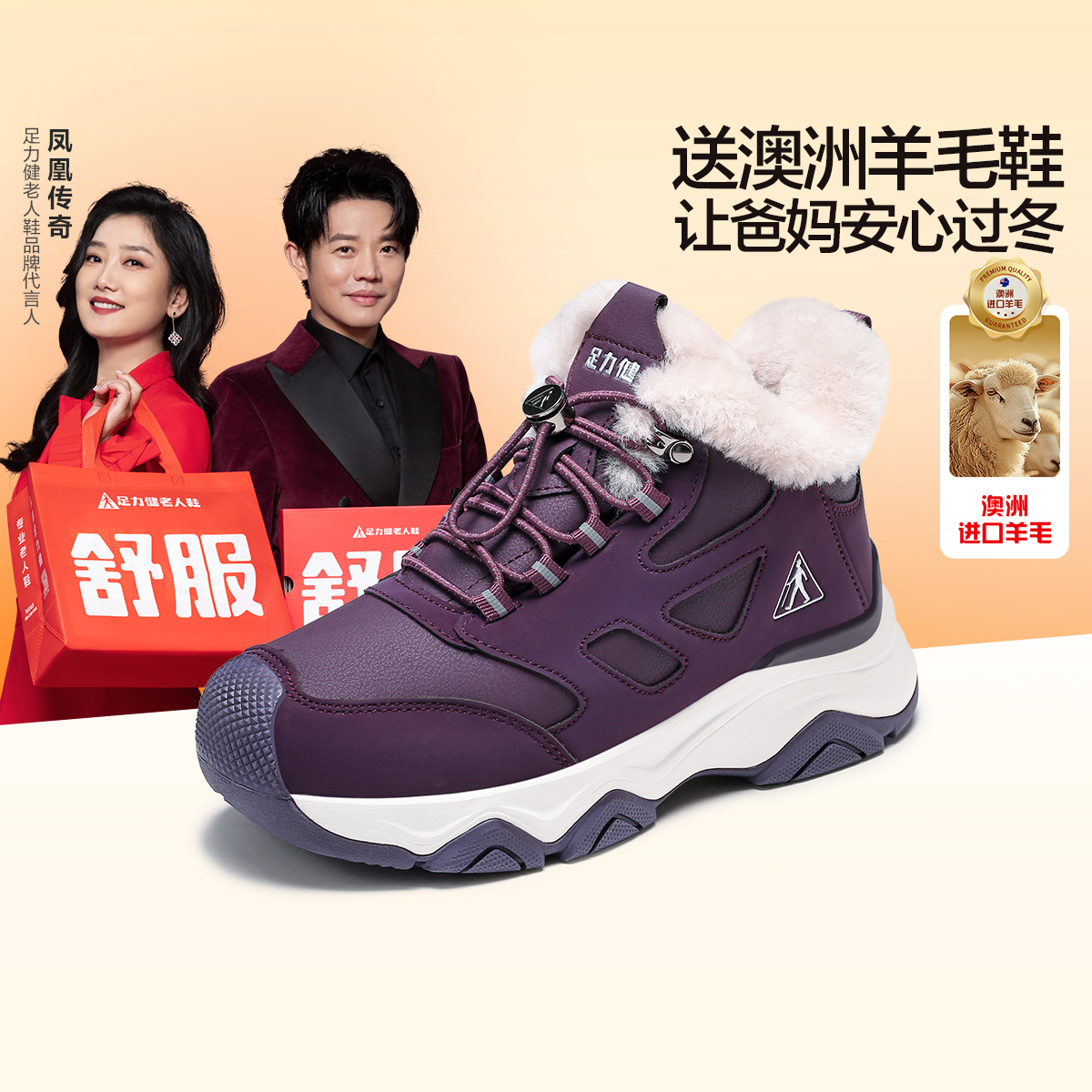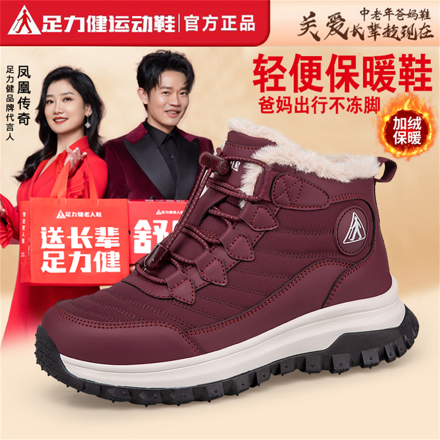 Cotton boots for men and women 2024 winter old Beijing fleece thickened cotton shoes middle-aged and elderly one-foot anti-ski boots large size