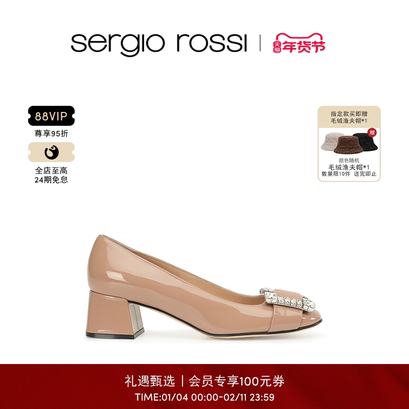 [Classic] Sergio Rossi/SR Women's Shoes SR PRINCE Series Diamond Buckle Square Heel High Heels FP