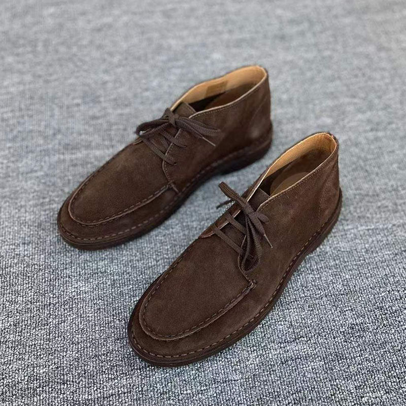 Men's casual high-top cowhide shoes desert boots 007 same leather shoe stitching mark comfortable Martin boots raw rubber sole