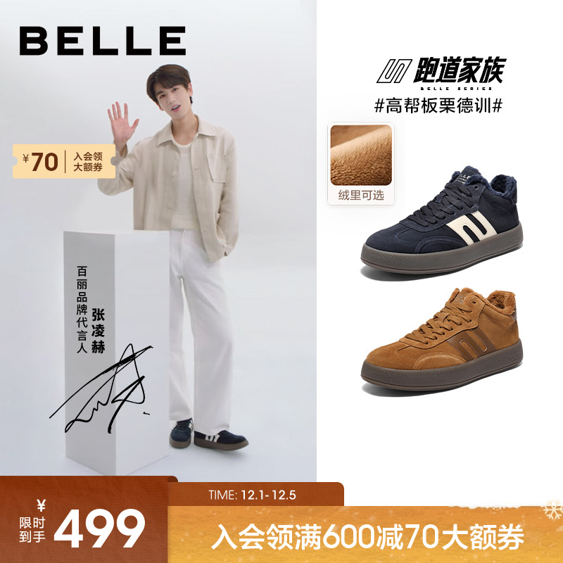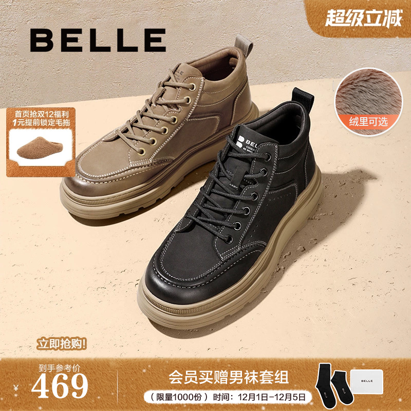 Belle men's shoes plush casual shoes real cowhide platform heightened Martin boots high-top board shoes short boots A1332DD3